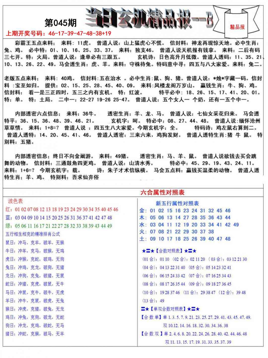 当日玄机精品报B